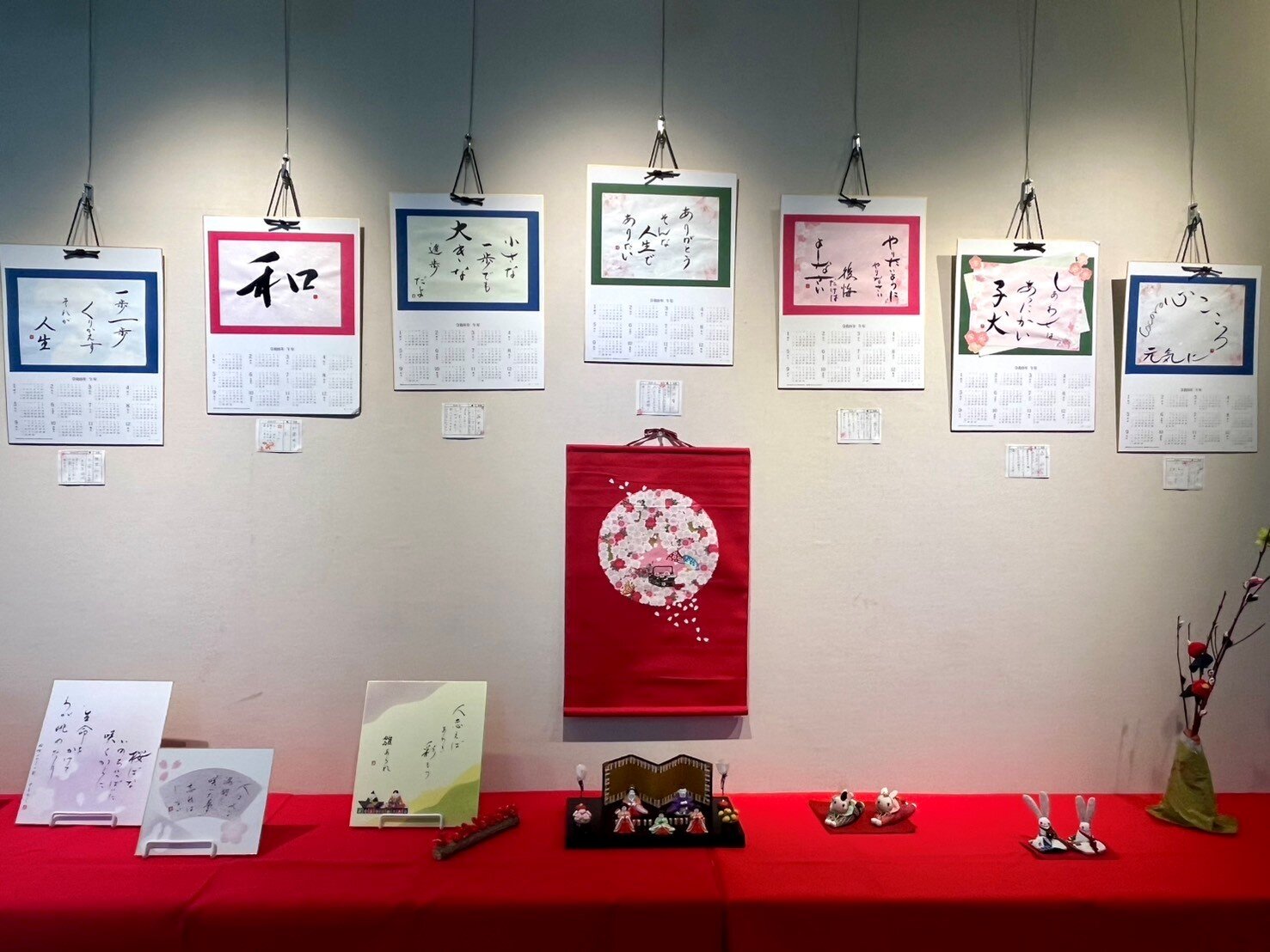 春のうたと個性あふれるカレンダーなど、作品を展示しています。