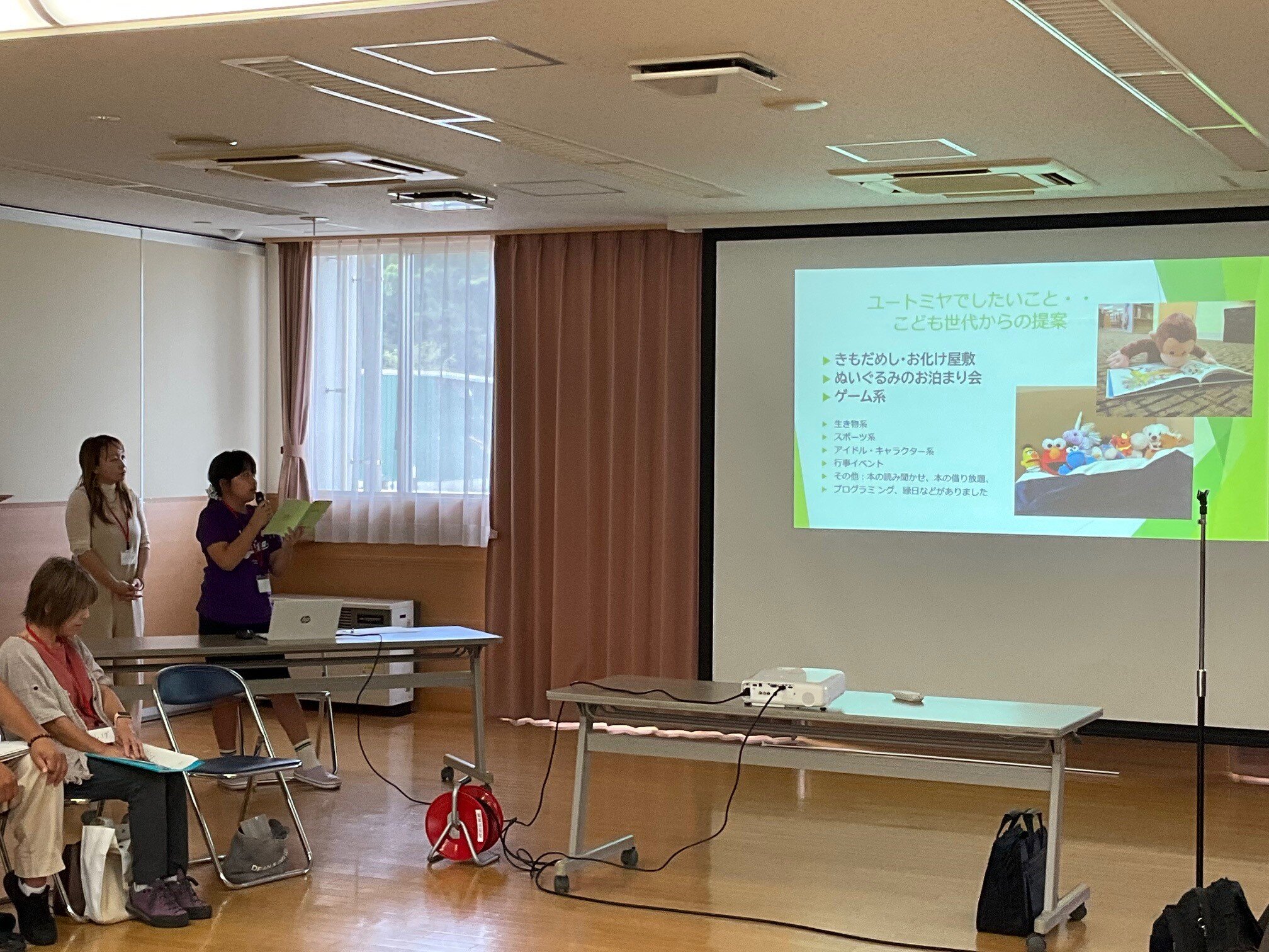 意見交換では、開館記念イベントとして「ユートミヤ全体を使った宝さがしを開催してはどうか」、「手作りの栞をプレゼントするといいのでは」、「お話し会と保護者の交流を組み合わせたい」等、様々な意見が話し合われました。