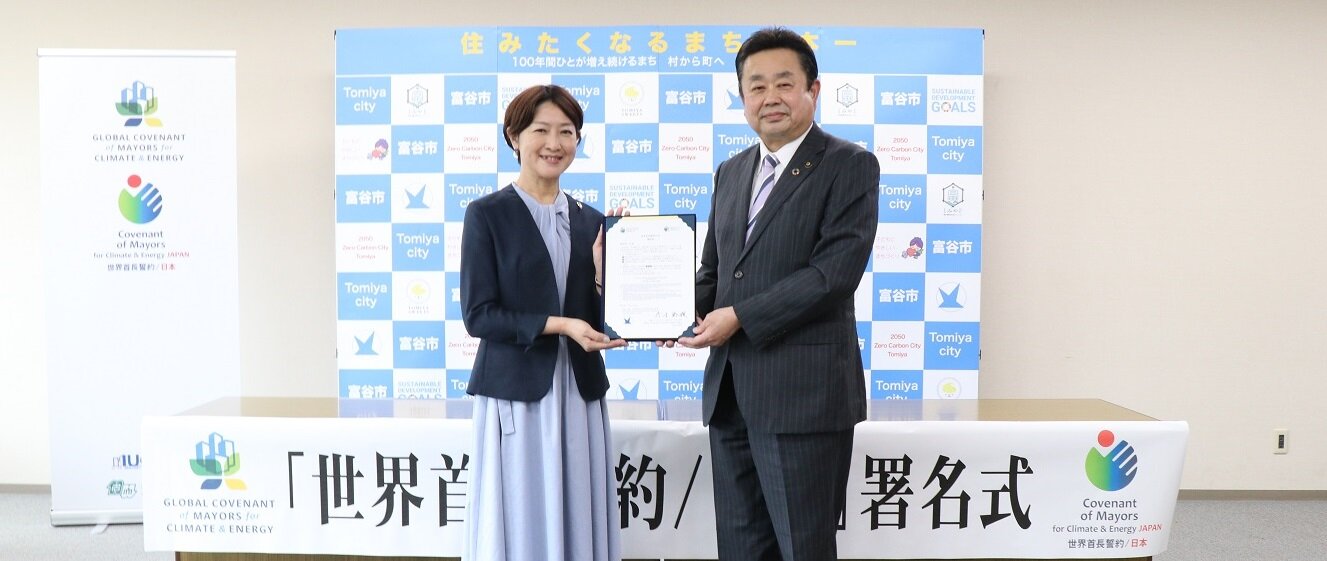 2050年カーボンニュートラルの実現に向けて「ゼロカーボンシティ」宣言をした富谷市は、東北で初めて「世界首長誓約/日本」に署名をしました。