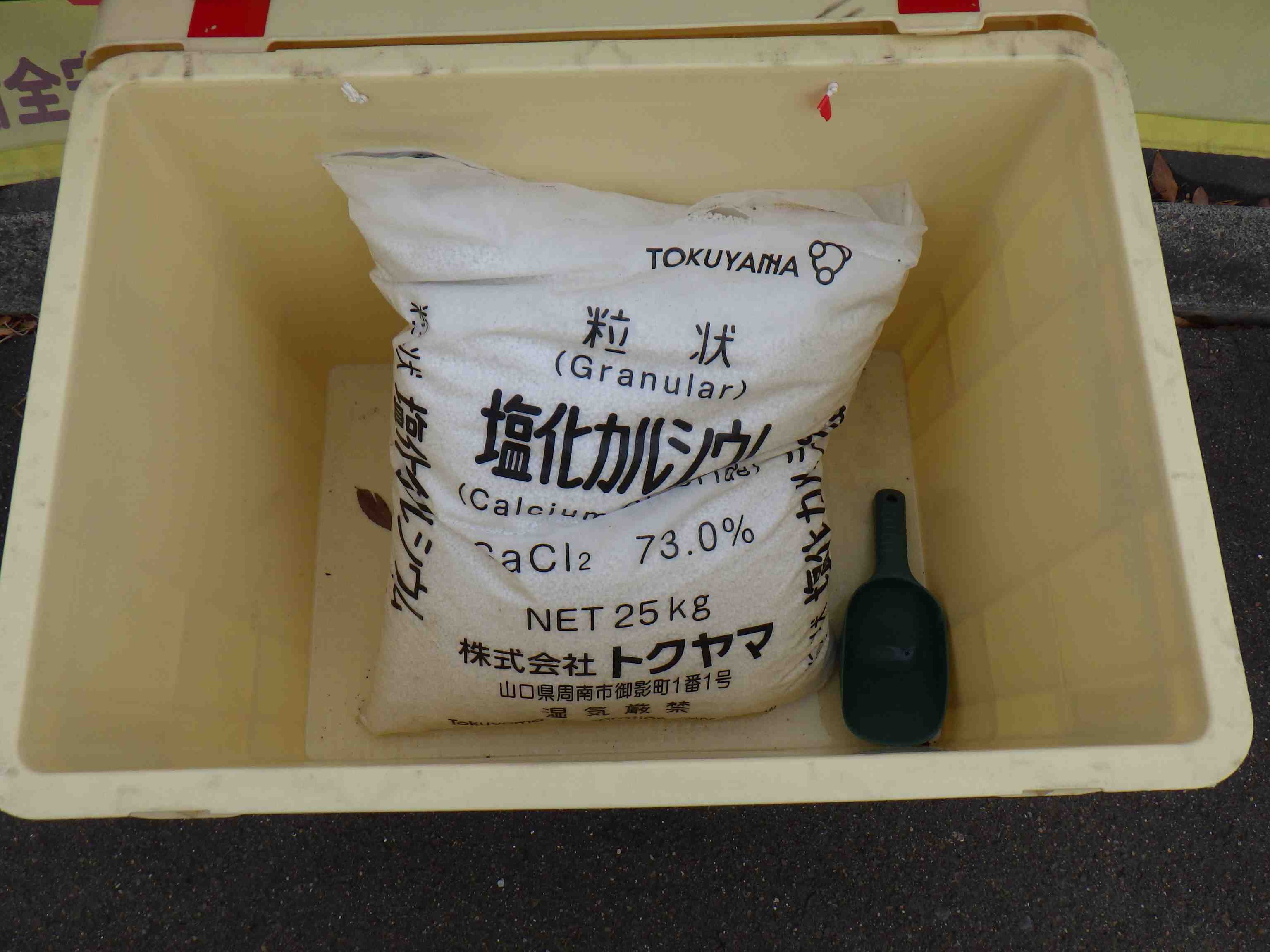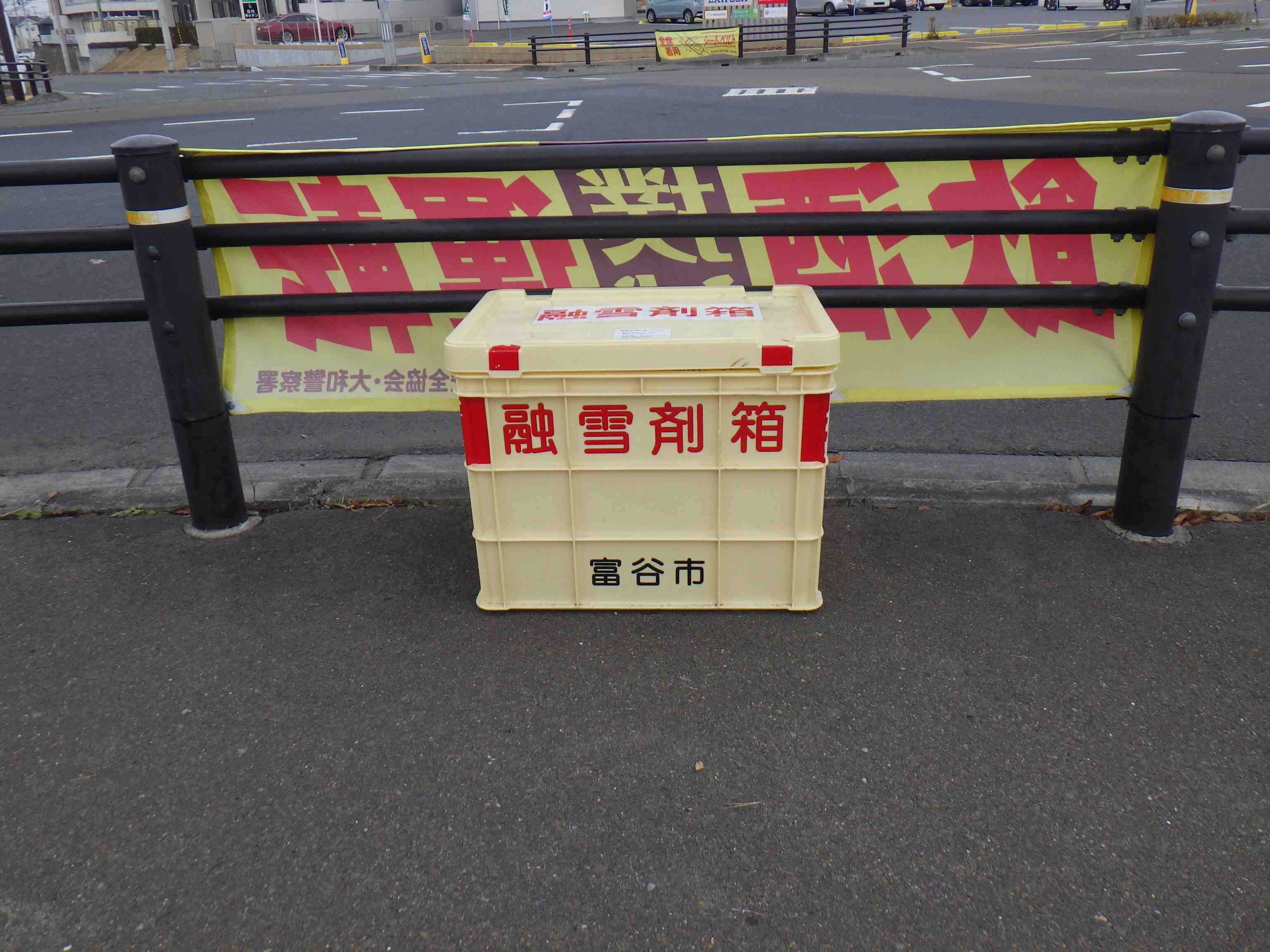 市では、道路の安全のため日陰や坂道など凍結しやすい場所に融雪剤箱を設置しております。