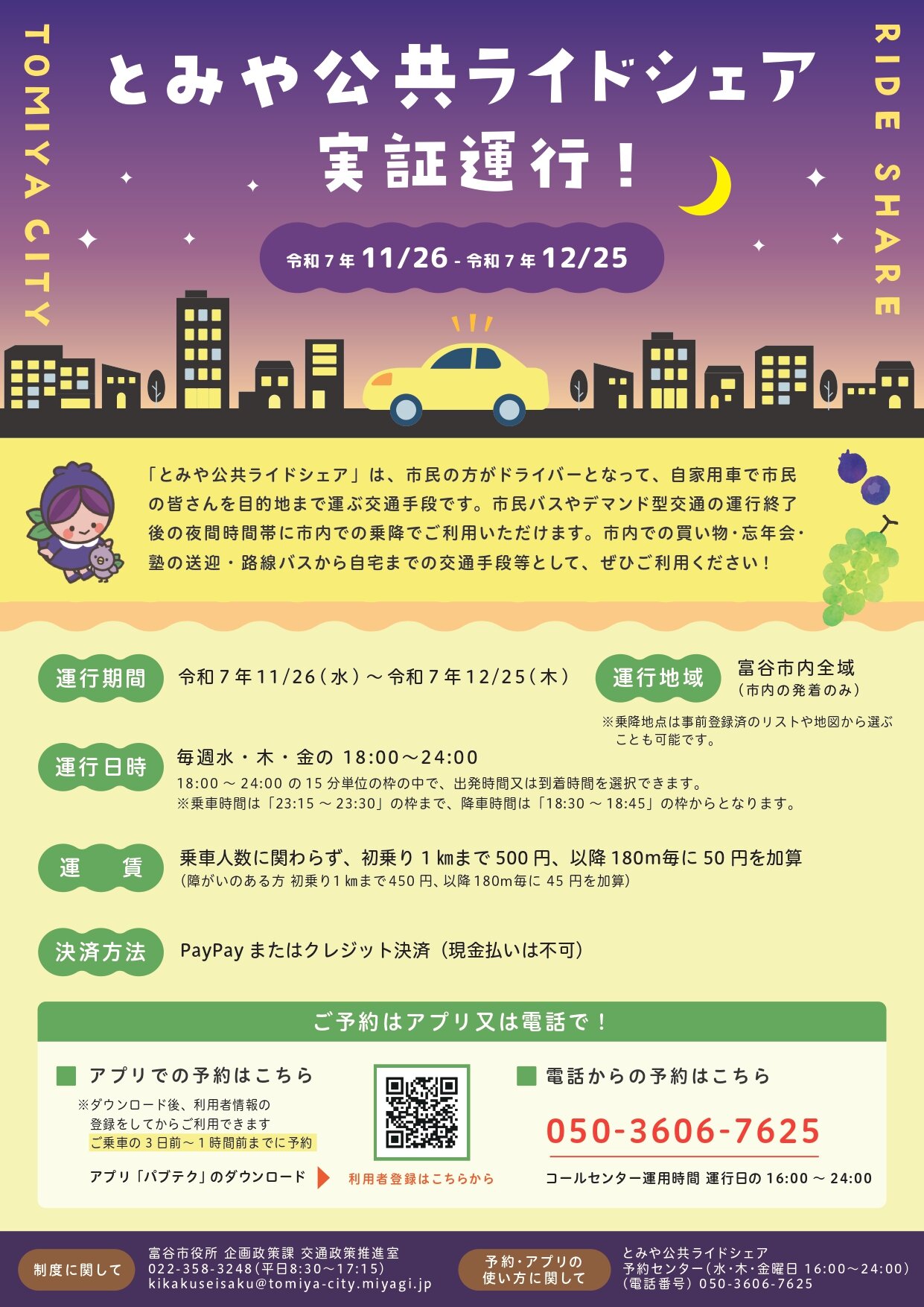 ☆【「とみや公共ライドシェア実証運行」の詳細はこちらから➔https://www.tomiya-city.miyagi.jp/kurashi/douro-koutsu/bus/db70b35e9eef1b1f911d974d08ef682b4773e80c.html】