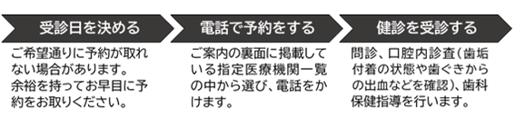 この事業では、健康増進法に基づく歯周疾患健診を実施することにより、成人期の歯の喪失原因である歯周疾患の早期発見を図ります。また、歯と口腔の健康を保ち、自分にあった口腔ケアを見つけていくため、かかりつけ歯科医を持ち、適切な保健指導、口腔衛生に関する正しい知識の普及を行うことにより、歯の健康についての認識と自覚の高揚を図ることを目的としています。