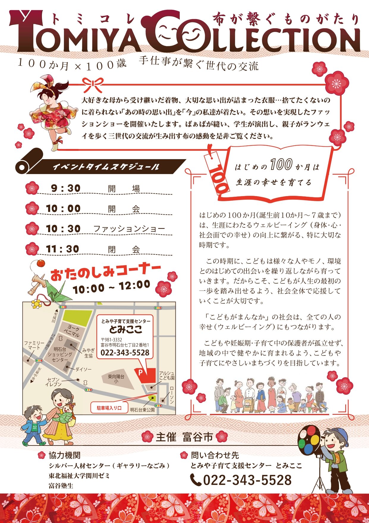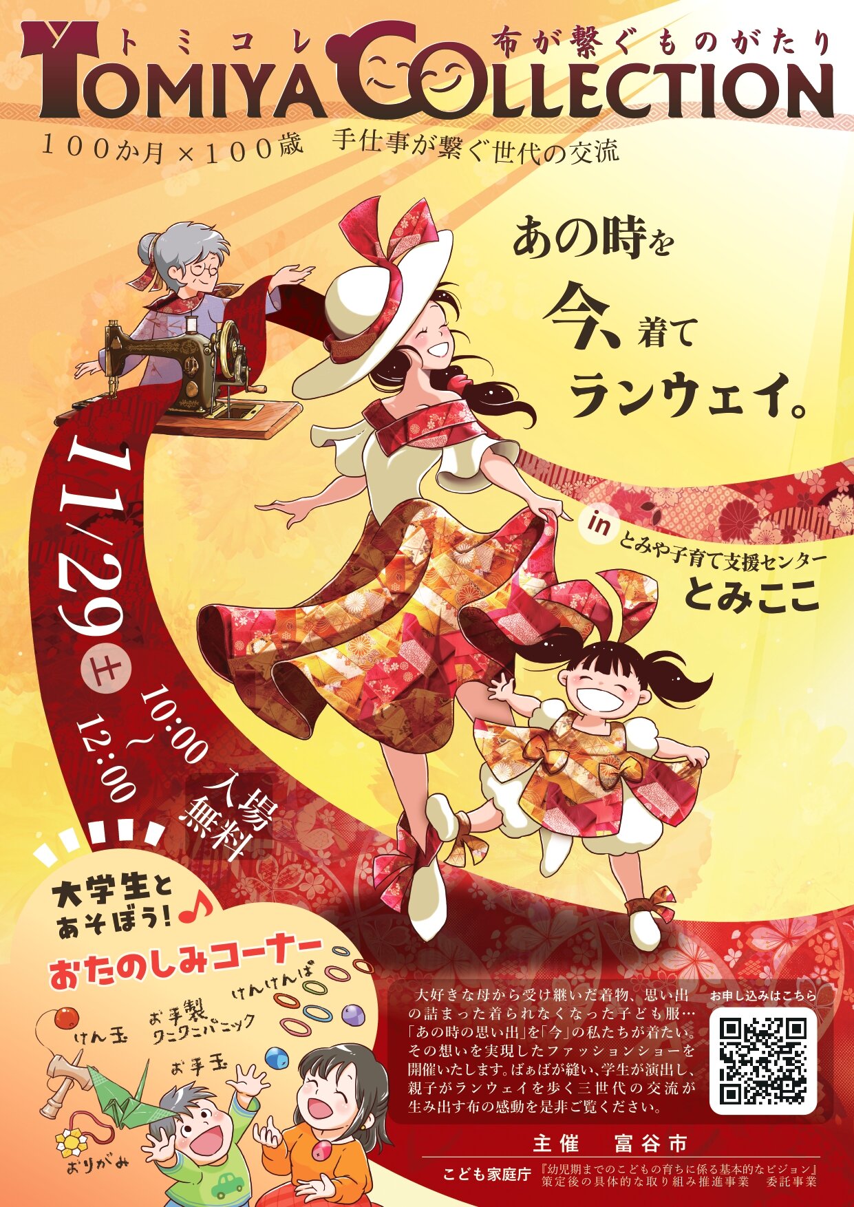 ファッションショーはどなたでも観覧可能です。大学生によるお楽しみコーナーもありますので、皆さんお誘い合わせの上、とみここまでお越しください。