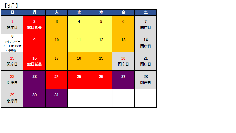 ■3月、4月の窓口延長日:3月2日、3月16日、4月6日、4月20日