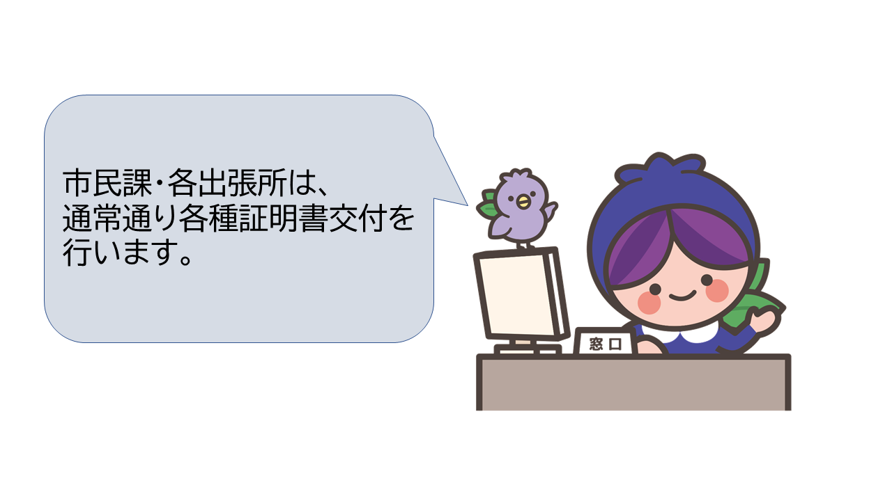 証明書の発行・住民票の写し・住民票記載事項証明書・印鑑登録証明書 ・戸籍全部事項証明書(戸籍謄本)・戸籍個人事項証明書(戸籍抄本)・戸籍の附票の写し・課税証明書 ・非課税証明書・所得証明