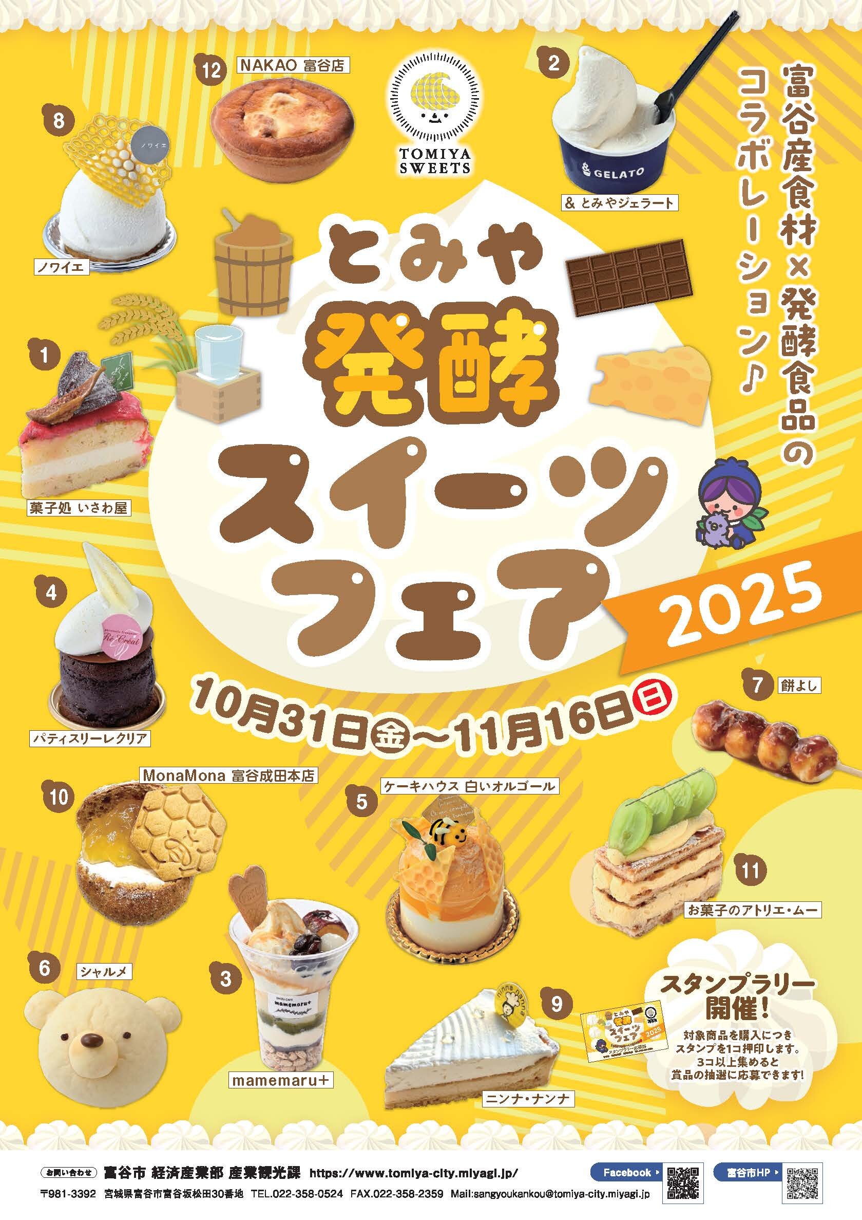 市内スイーツ店にて、富谷産食材と発酵食品を掛け合わせたオリジナルスイーツを販売する、「とみや発酵スイーツフェア」を開催いたします!