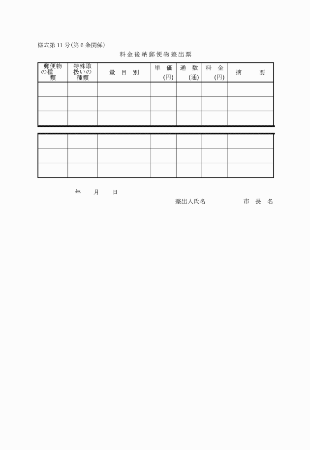 (11) 料金後納郵便物差出票(様式第11号)