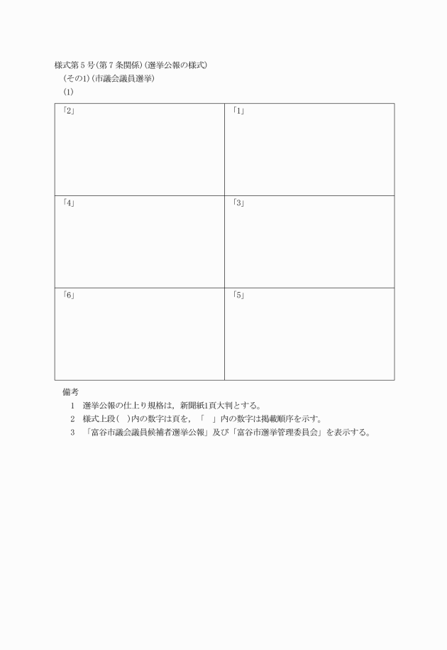 第7条 選挙公報は,様式第5号によるものとする。ただし,掲載欄は必要によりこれを増減する。
