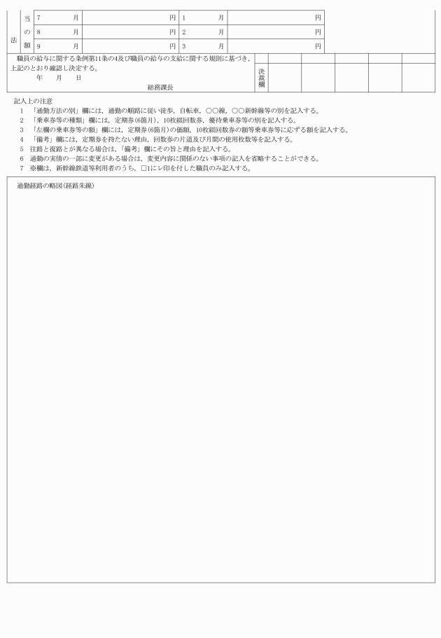 第11条 職員は,新たに給与条例第11条の4第1項の職員たる要件を具備するに至った場合には,その通勤の実情を速やかに通勤届(様式第3号)により任命権者に届け出なければならない。同項の職員が次の各号の一に該当する場合についても,同様とする。