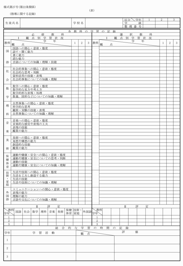 第21条 中学校の出席簿の用紙は,様式第18号の2とする。