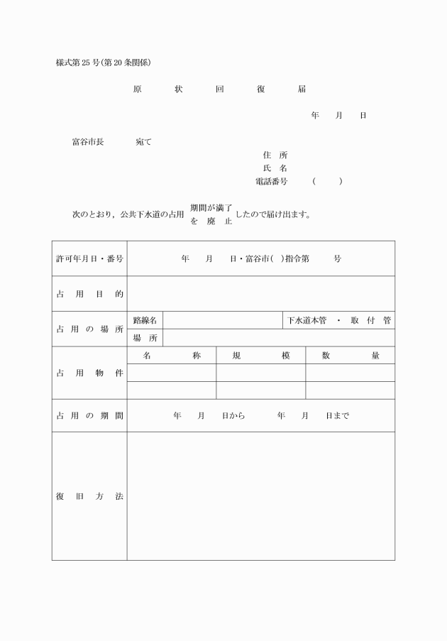 (平13規則10・全改,平28規則13・旧様式第20号繰上)